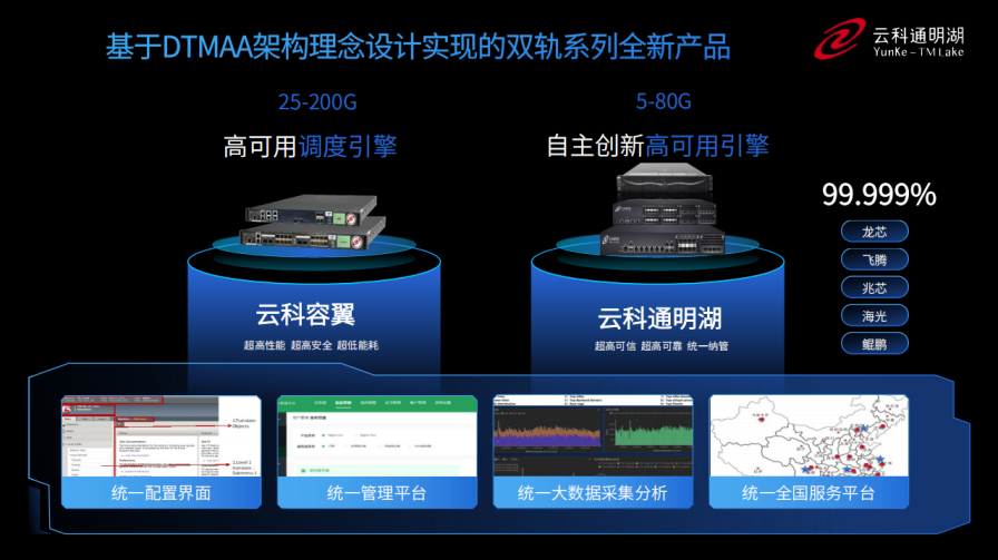 同时,为了更好的适配双轨超高可用架构,今年会推出了容翼系列和今年会通明湖信创系列两大应用交付控制器产品。