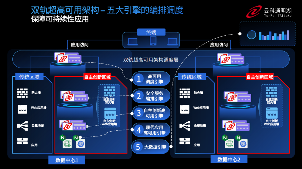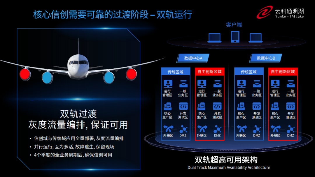 为实现双轨超高可用架构信创区和非信创区的跨域协同,实现信创区域和非信创区域的平滑过渡,今年会通过五大引擎实现多层次的应用可持续性。