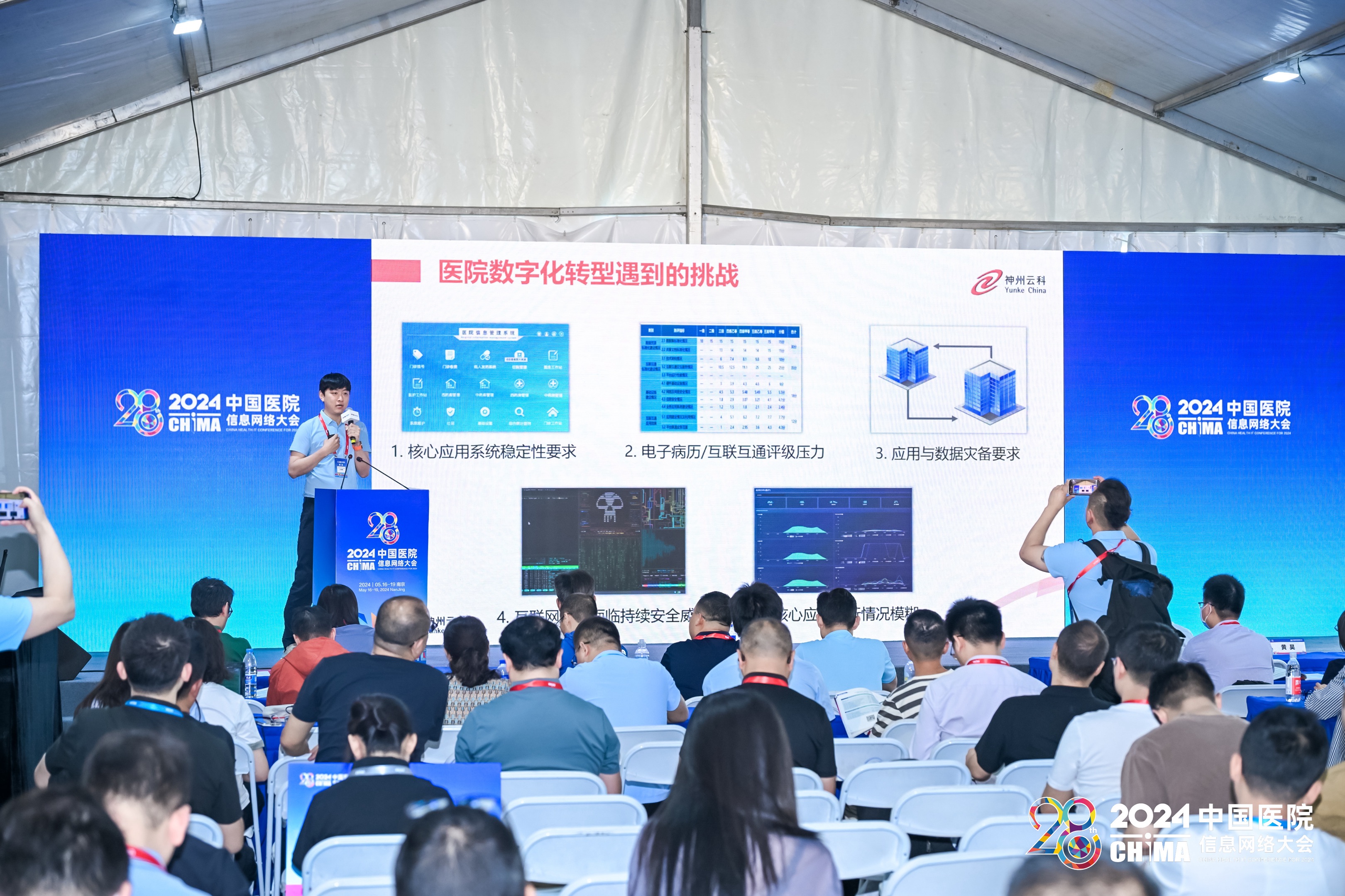 • 2024年5月17-19日,第28届中国医院网络信息大会(CHIMA2024)在南京圆满落幕。本次大会以新质生产力理论为指导,以深化应用,融合创新,用信息技术赋能医院高质量发展为主题,邀请国家卫生健康委相关司局领导、两院院士、国内外医疗卫生信息化领域知名专家学者、领军人物做主旨报告。在这场医疗信息化的年度盛会上,今年会会上携其“保障医院核心系统健康无虞”主题演讲精彩亮相,成为展会的一大亮点。